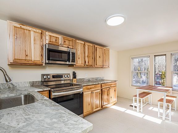 Welcome to this stunning and meticulous home, located in the sought-after 55+ CO-OP community of Raymond, where available Co-Op communities are scarce. Since this is in a resident owned community, buyers are eligible for a 5% down loan. This gorgeous property features a completely renovated interior, with no detail overlooked. The spacious living room boasts a beautiful stone fireplace and stunning hardwood floors, while the smart shower-head and LED mirrors in the bathroom add an extra touch of sophistication. The pine ceilings and new doors throughout the home provide an additional layer of class. The heart of the home is the gorgeous new kitchen, which boasts stunning granite countertops, stainless steel appliances, and beautiful cabinets. The recess lighting and attractive light fixtures add an extra touch of elegance to the space, making it perfect for entertaining. Enjoy morning coffee or evening cocktails on the newer expanded enclosed deck or relax in the finished expanded interior porch area. The property also includes a washer/dryer in unit and massage chairs, providing ultimate convenience and relaxation. This home is ideally located in Raymond, close to Portsmouth and the Seacoast. is also just minutes away from the renowned Pawtuckaway State Park, where individuals enjoy a private beach,canoe launch, camping, and more
