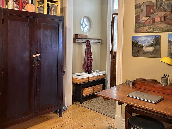 Welcome to your city farmhouse! Eastside 3 bedroom home is brimming with historic charm: 9-ft ceilings, wide plank floors, original moldings, tin ceiling, transom and round windows in foyer & bright, airy primary bedroom! Seller uncovered and restored many original details along with big improvements: New porch with turned columns and T&G flooring, radiator heat with high efficiency boiler and heat pump hot water heater, new copper water line. well maintained roof (2016/2024) with solar skylight, new heat cables, seamless gutters, new basement floor and waterproofed foundation, newly fenced back yard. With so many big-ticket items completed you can focus on the fun part: making this sweet vintage home your own! On a quiet dead-end street a short walk to Emma Willard and PS 16 schools, a mile from Hannaford, PO and Wynantskill shops, ½ block to bus that brings you to RPI campus or downtown Troy in minutes or a 20-min commute to downtown Albany. A truly special home for those who appreciate historic charm, convenience and walkability!