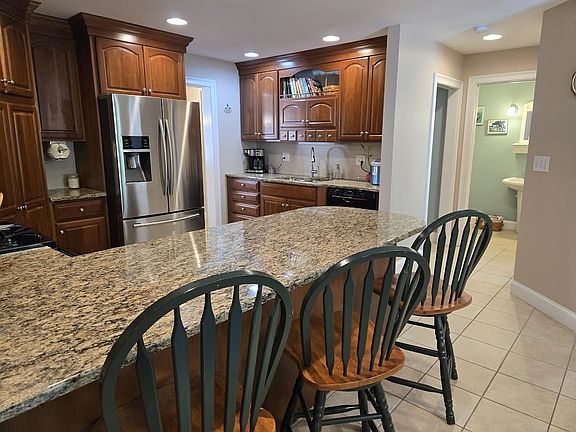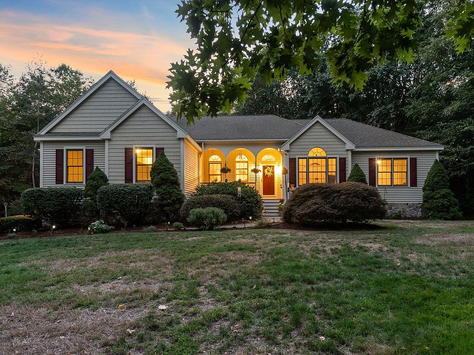Welcome to 12 Parshley Lane, an executive ranch offering the ease of single-level living on a private 2-acre setting. This 2001 custom-built home features an eat-in kitchen with granite countertops and cherry cabinetry that opens to the dining room, 4-season sunroom, and grand living room with a granite gas fireplace—perfect for gatherings! The secluded en-suite primary offers a spa-like retreat, thoughtfully separated by the living area from 2 additional bedrooms and full bath. French doors off the living room reveal a flexible Office/4th bedroom with a vaulted ceiling, ideal for work or playroom. The main-level laundry and half bath off the kitchen enhance convenience. A walk-up attic and oversized 3-car garage offer plenty of storage. Entertain in the finished lower-level complete with a custom mahogany bar, media built-ins for surround sound, game area, & half bath. Outdoor living includes a welcoming farmer’s porch & double decks overlooking serene natural surroundings—close to major routes yet tucked away in nature! This home is a Dream Come True!