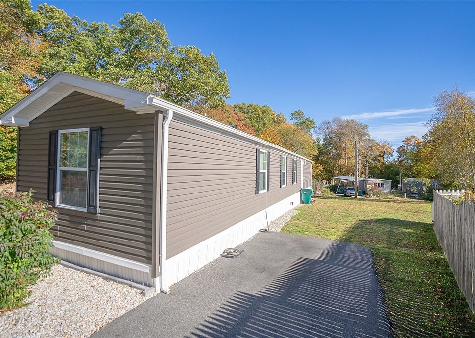 Well-maintained 3-bed, 2-bath single-wide located at the top of the circle in Mayflower Hills Family Park. This clean and cared-for home offers added privacy with no neighbor on one side and a quiet setting within the community. The layout features a spacious living area, functional kitchen, and primary suite with private bath. Conveniently located near White Horse Beach, shopping, dining, and highway access—perfect for commuters or beach lovers alike. Whether you're starting out, downsizing, or investing, this move-in ready home is a great opportunity in a desirable location! HOA fee covers land taxes, water, snow plowing, road maintenance, and trash removal.