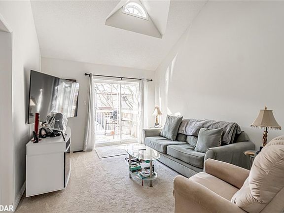 QUIET CUL-DE-SAC LOCATION WITHIN WALKING DISTANCE TO AMENITIES & FEATURING A WALKOUT BASEMENT! This lovely 2-storey townhome is ideally located just minutes from the waterfront and downtown Barrie, offering easy access to a wide range of amenities. Situated on a quiet cul-de-sac with only local traffic, this home offers a peaceful, in-town location while still being within walking distance to shopping and public transit. The open-concept principal rooms are perfect for entertaining, featuring a well-equipped kitchen designed for both functionality and style. The living room impresses with soaring vaulted ceilings and a walkout to the back deck, ideal for enjoying the outdoors. The main floor primary bedroom offers convenient semi-ensuite access and a walk-in closet, while upstairs, you'll find two generously sized bedrooms, each with double closets. Updated carpet with thick underpad adds comfort throughout the home. The walkout basement offers a blank canvas for your ideas, complete with a rough-in for an additional bathroom. The partially fenced backyard is ideal for outdoor enjoyment, while the attached garage and additional driveway spot complete this incredible package. Don't miss out on the opportunity to make this fantastic #HomeToStay yours!