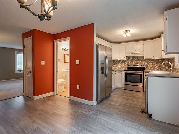 Cozy fireplaceSlate floor entrywayTiled backsplashFinished lower-level bonus roomVinyl plank flooring