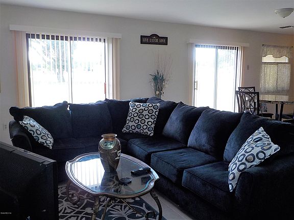 Adorable and Move in Ready! This light bright home has an Open Floor plan. The kitchen has New Appliances. Tile floors in through except for the Bedrooms which have New Carpets. New vertical blinds on both sliding glass doors. Washer and dryer Included. Fresh paint in and outside. New well tank and pump. On an oversized lot on a quiet cul de sac. Great location to commute to Ocala, Summerfied or the Villages.