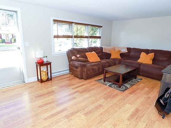 Come take a look at this move in ready, freshly painted, 3 bedroom, 1 bath Ranch located in a quiet cul-de-sac neighborhood! Home features bright eat-in kitchen with ceramic tile flooring which opens to a good sized living room! Updated ceramic tile bath with linen closet! New roof in 2016 with architectural shingles! Nice level backyard with 2 storage sheds! Additional Family Room and Game room in the partially finished basement with wood stove! Carefree vinyl siding! Town water and sewer! This well cared for home will go quick! Face masks required.