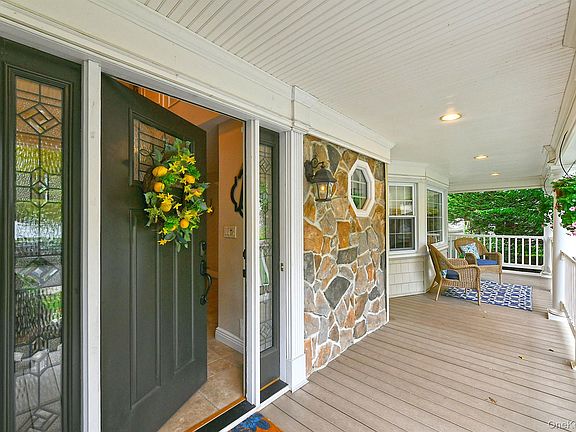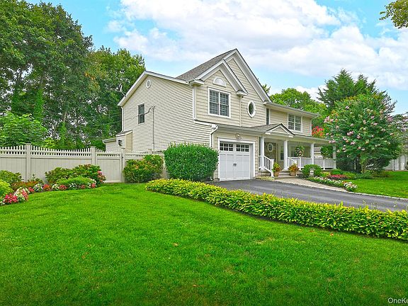 Welcome to this beautifully renovated & expanded 4-bedroom, 2.5-bath colonial in the highly sought after Harborfields School District! Nestled on a quiet, tree-lined street this meticulously renovated and thoughtfully expanded home is truly turnkey. From the moment you step into the stunning two-story entry foyer, you can't help but notice the attention to detail and the functional layout this home offers. Each room flows into the next making entertaining effortless. The dining room offers a view of the yard and opens directly into the spacious kitchen which features custom cabinetry, quartz countertops, a stylish backsplash, stainless steel appliances, a bright eating area and radiant heat floors. Just off the kitchen the wonderful expanded family room with gas fireplace and plenty of natural light create a room that's perfect for cozy family nights or large gatherings. Upstairs, the primary bedroom boasts tray ceilings, his and her closets, and an en suite bath with steam shower and radiant heat floor. Three additional bedrooms, including a second primary-sized bedroom, and another full bath provide ample space for family or guests. Outside, the welcoming front porch offers a cozy spot to relax and welcome visitors. Out back, a fully fenced yard provides privacy along with a large patio with a custom built-in grill and bar, a heated saltwater pool and lush landscaping - a yard that’s perfect for both relaxing and entertaining. Additional highlights include gas heat, central air conditioning, hardwood floors, beautiful window treatments, crown molding throughout and an attached garage. Located on a quiet block yet minutes from town, parks, beaches and the LIRR, this home is not to be missed!