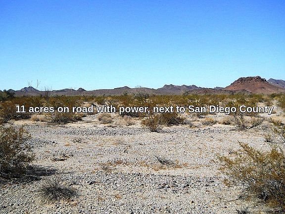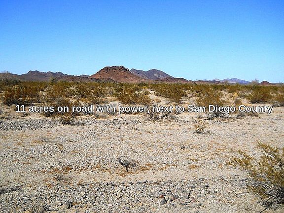 For sale by owner. Owner Financing is available. Email ymarko@comcast.net or call (904) 310-4222. Breathtaking 11 acres property with electric power. Bring RV, trailer, cabin, yurt, tiny house. Great for weekend getaway, or rent as AirBnB. Next to San Diego county. Borders Ocotillo Wells State Park with thousands of acres to enjoy. Close to Hwy 78 and Hwy 86.