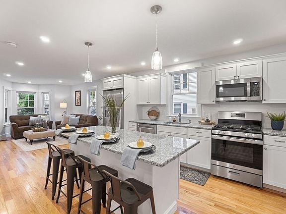 Come make this updated 3 bed/2 full bath 3 story townhouse your new home. The 1st floor underwent a total gut renovation, including an entryway with coat closet, living room with a charming bay window that flows seamlessly into the well equipped ktchen with white cabinets, granite countertops, stainless steel appliances, and a generous island. The first floor is further enhanced by a breakfast nook with many windows and vaulted ceiling as well as a full bath. Completing this floor is a laundry closet. The second floor consists of 2 bedrooms as well as a brand new bathroom with tub/shower double vanity and ceramic tile floor. The third floor, with its beautifully refinished wide pine floors, includes 3rd bedroom with large closet and a bonus room great for home office or teen hangout space. Upgrades include new plumbing, vinyl siding, windows, exterior doors, updated wiring, and new 2 zone heat and AC unit. All this located within walking distance to Horn Pond and vibrant Woburn Center