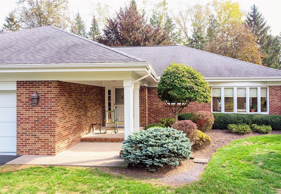 Spacious and gracious RANCH with desirable private end location! Quaint area of 20 townhomes located just minutes to all conveniences: Bushnell's Basin, Park, X-way, Eastview Mall, canal path and the Village of Pittsford - Pittsford Schools and in Town of Perinton! Primary suite offers dressing area, large closet, hardwood floor and newer bath. Large eat in kitchen with bay window, hardwood floors and solid counter tops. Custom window treatments and recessed lighting. Living room with gas fire place vaulted ceilings open to spacious dining area with custom build in cabinet. Family room could be 3rd bedroom or great for in-home office. Enclosed Florida room with sliding door to the private patio. 1st floor laundry! New Trane furnace, air conditioning and Aprilaire humidifier installed in December 2024, and hot water heater in 2021. Incredibly spacious finished lower level area with powder room is great for hobbies, workshop or exercise! All furnishings and accessories available for purchase Open houses Friday 24th from 4-6 and Saturday 25th from 1-3. Delayed negotiations with all offers due on Tuesday 10/28 @ 6pm