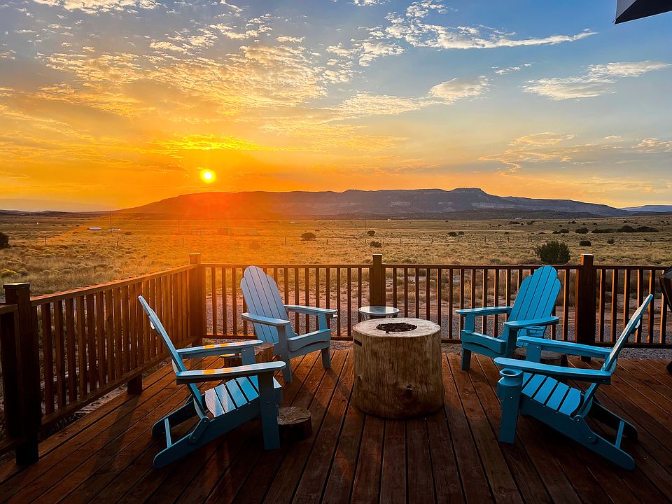 3Bdrm / 2 Bath home w Hot Tub and huge deck, overlooking Cerro Pedernal- Home of Georgia O'Keeffe, & Dark Sky Sanctuary land.