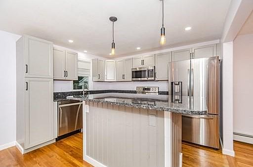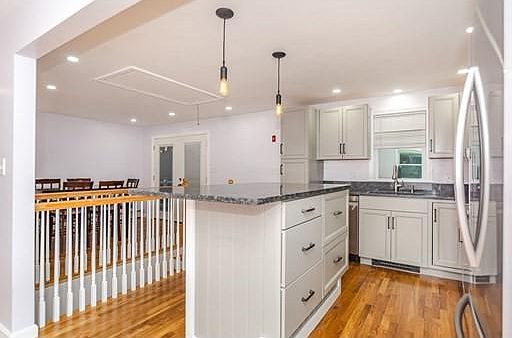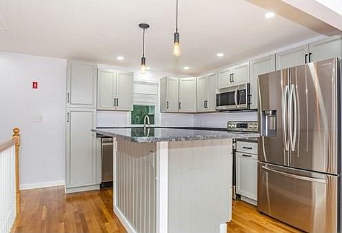 Welcome Home to this warm and inviting Ranch style home set on a lovely lot near the Burlington line. This recently updated home offers a light and bright floor plan, a gorgeous new kitchen with center island, granite counters, stainless steel appliances and gleaming hardwood floors which flow throughout. Additional features include a new bath with ceramic tile, 2 bedrooms, 1 car garage and an unfinished lower level with many possibilities, bring your ideas. Some more updates include windows, vinyl siding, electrical and heating. Step out the glass doors in the dining room to the covered porch and then step down to the oversized patio, both are great for all your outdoor entertaining and overlook the wonderful backyard. Just move in and be home for the holidays!