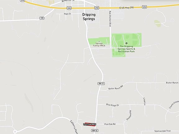 Commercial Zoning/General Retail (GR) - Good access and visibility with 105’ frontage on RR 12 - Traffic count 15,400 - Utilities obtainable from Dripping Springs Water Supply Corp and Pedernales Electric Co-op - Sewer line is located in 25’ easement on RR 12 frontage however wastewater connection is not currently available. Dripping Springs has a 2026 population of 10,165 and is currently growing at a rate of 16.87% annually and its population has increased by 98.88% since the most recent census, which recorded a population of 5,111 in 2020. The City's Zoning Use Chart and 2040 Comprehensive Plan are attached hereto in "Documents".