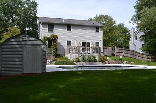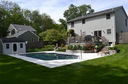 Curb appeal radiates from this charming colonial nestled on a quiet cul de sac in North Walple's Fisher School District. Outside features an expansive lawn, attractive landscaping, and huge fenced yard with a 16'x32' IN GROUND POOL for summer fun! Kitchen has new stainless appliances and a sunny dining area with slider to the large deck overlooking the pool. Sun pours through the oversize windows and double high foyer filling this house with light. Attractive mill work throughout the living and dining rooms including wainscoting, chair rail and crown moldings. Newly carpeted first floor family room connects to the kitchen dining area. Front-to-back Master Suite features a walk-in closet and full bath, 2 other well proportioned bedrooms and a full bath complete the 2nd floor. GAS HEAT!! Hurry - Showings begin at the open house on Sunday June 1 from 1pm - 3pm