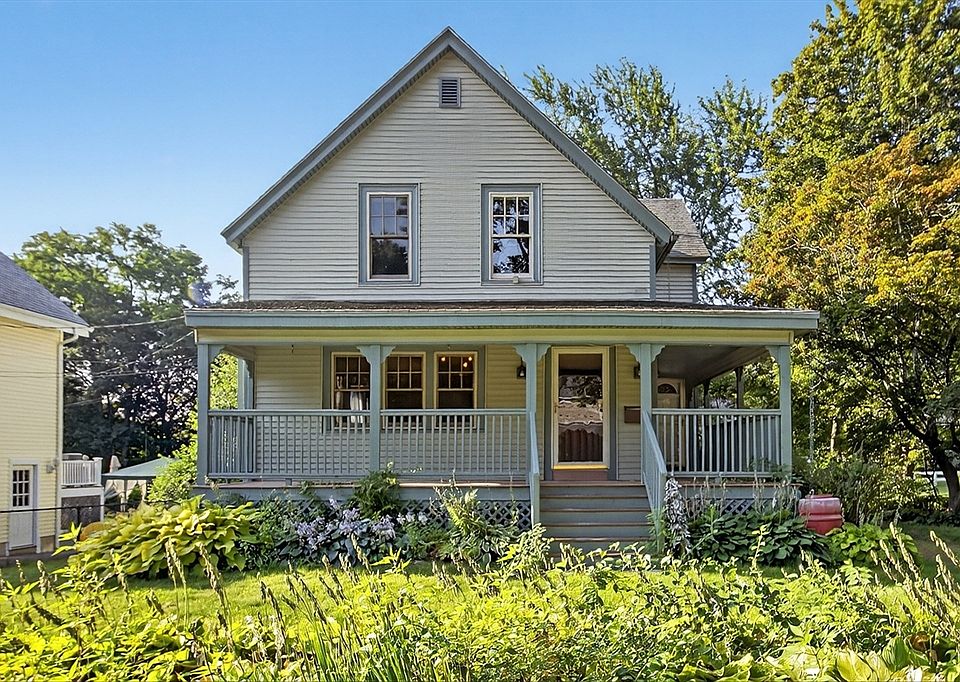 Welcome home to this timeless Colonial! Located on a side street just moments from the heart of Shrewsbury's downtown & schools, here's a chance to blend antique charm with your style. The welcoming, wrap-around farmer's porch w/composite decking leads you into the living room, complete w/hardwoods and a window seat. Bring your design goals to life in the eat-in kitchen with vintage, space-saving built-in wall cabinetry. One of the truly notable features is the great room! Ideal for large gatherings or simply a daily hangout space, it has a full bath, private deck overlooking the backyard, and a spiral staircase leading up to loft/balcony area. Upstairs, you'll find each bedroom is nicely sized along with a second full bath. Need storage? The unfinished basement along with the 2-car garage is your answer! Although cosmetics and design ideas may be needed in some rooms, you'll reap the reward of future equity and having your new home just the way you envision it!