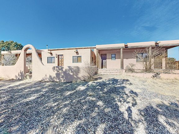 Three Bedroom, three bath single family home in a lovely rural location. Saltillo Tile throughout this single story home with courtyards on the front and back of the structure. Wood stove in the living room makes it cozy in the winter. Off the Owner's Suite is a wire fenced in patio previously used for cats and could potentially accommodate birds. Off the back yard patio/courtyard is a fire pit. The property sports a barn and a storage shed.