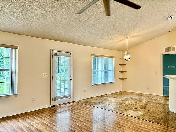 Well-maintained 4 bedroom, 2 bath home featuring a split floor plan and open, spacious layout. Situated on a peaceful freshwater canal, this property offers privacy with a natural backdrop. Inside, the home has travertine tile flooring, and a bright open kitchen/dining/living room design. The master bath is all natural slate, includes custom lighting, a heater for those cold mornings, and a Jacuzzi-tub with detailed tile work. The garage is upgraded with custom shelving and an insulated door, providing energy efficiency and organization, along with a lofty attic with extra shelving for optimum storage. Outside, enjoy a fenced-in backyard, perfect for pets, along with a 12x14 shed with electric, perfect for a workshop, or extra storage. Nestled in a quiet, wooded neighborhood, this home offers peace and privacy, while being walking distance to schools and close to amenities.