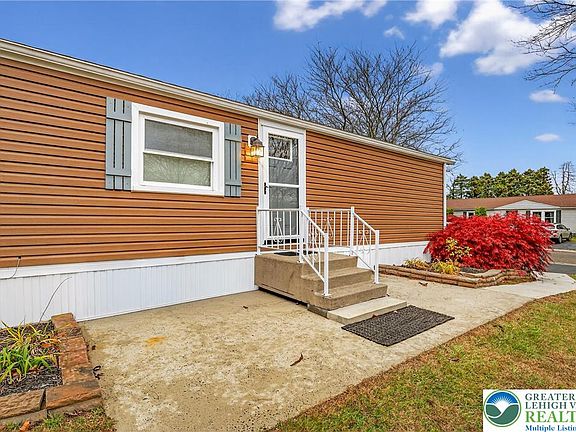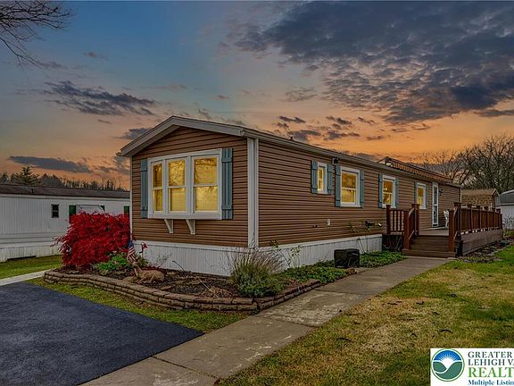 Lovingly maintained 3-bedroom, 2-bathroom manufactured home in the 55 and over community of Evergreen Village in Upper Mount Bethel Township, perfectly positioned for a modern lifestyle. This cozy abode boasts a pellet stove for warmth and ambiance, Kerosene forced air heat, AC, and 36" doors for accessibility. Enjoy the updated features including granite counters, stainless steel appliances, Kraftmaid cabinets with pull-out shelves, and a stylish tile backsplash. Stay comfortable with a walk-in shower, double hung windows, and a 8X35 Trex deck with an electric awning. Additional highlights include updated landscaping, small vegetable garden, a new roof (2025), a large 10X30 shed with electric, 2 TVs, and a portable generator. Revel in the community amenities like water, sewer, trash, pond access, shuffleboard court, clubhouse, and pool. Don't miss out on this gem near I-80 with unbeatable convenience.