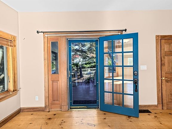 Handsome fireplaceSpacious deckBeamed ceilingBathroom with double vanityGranite countertopsOpen floor planAmple closet space