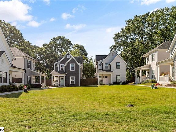 This 3 bedroom, 3 bath home is minutes from downtown Greenville and close to restaurants, shopping, etc. Built by Renaissance Custom Homes in 2020, this adorable cottage faces a pocket park and has 2 assigned parking places. There are hardwoods throughout the home. The kitchen opens to the great room and features quartz countertops, a range with a gas cooktop, refrigerator and built in microwave. There is a guest room with a full bath on the main level. Upstairs you will find the master suite and a 3rd bedroom which is also a perfect office. The large master suite has 2 walk in closets, double sinks and an oversized tiled shower. The backyard is fenced and has a patio for grilling and enjoying times with friends and family. The HOA includes lawn maintenance and trash pickup. Home is well maintained and in move in condition!