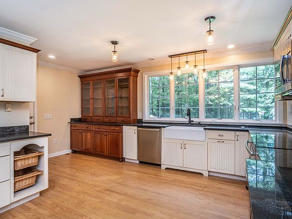 If you think the curb appeal is great, wait until you walk inside! This expanded cape style home offers comfortable space for everyone to feel at home and is an entertainers delight! The kitchen is truly the heart of this home and a cook's dream - from the spacious pantry with pull out shelving, to granite countertops, abundant cabinetry, stainless steel appliances and built in hutch and desk, the kitchen flows seamlessly into the family room. Hardwood floors flow throughout the lower level into the living and dining room and upstairs as well. Crown moulding puts the finishing touch on each room. You'll love the spacious screened-in porch off of the kitchen and the deck that wraps around to the family room. Upstairs you'll find 3 bedrooms all with hardwood flooring and "california style" closets with built-ins. The master suite is expansive - it's entry offering a craft or hobby area with unbelievable storage. Once in the room, the gas fired fireplace and window seats will becon you to stay - how cozy is this space?! The bathroom is your own personal spa with walk-in shower and soaking tub. Abundant closet space - there's plenty with the walk-in closet and then the closet within the closet! Heading down to the walk-out basement, there's more finished space with built-ins and tons of storage. How will you use this room -media, play, home gym? On the other side of thes basement, you'll find mechanicals and even more storage! Centrally located in Burlington with easy access to the town center and Collinsvillle's rails to trails. New furnace 10/2021; new well pump 1/2021; water filtration 1/2024
