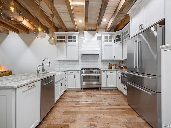 How fortunate would it be to have the opportunity to be one of the new owners of these gorgeous Townhome, situated above the Hudson River. Offering 3 bedrooms, 3 1/2 baths with an additional 917sf finished basement. This luxury Town Home community is made up of 18 single family attached homes. The open kitchen living space is set perfectly for entertaining. Sit out front on your porch and sip coffee in the most serene setting with River views every day. The light filled living room shows the hand-hewn beams throughout the high ceilings. The kitchen has the perfect space for entertaining & watching your daily sunsets. The front dining room could easily be used as a 1st floor bedroom or be kept as a formal. This is the only unit in the complex with a finished basement offering an additional full bath. The Mahogany front doors, granite counters, solid wood cabinets w/glass door fronts, 2 reserved parking spots in the lot, tiled bathrooms, recessed lighting, thick cut timber stairs to your 2nd floor, 2nd floor laundry, cathedral ceilings & a large master bedroom shower complete this home. The centerpiece of the open common space offers the original 200 year old gazebo which is restored & brought back to life as a beautiful focal point. Just steps from the train with stairs up to the complex will lead you back to your home after a long day at work with ease. The common space has 2 rooms for use of the owners plus a climate-controlled mail room for mail & packages.