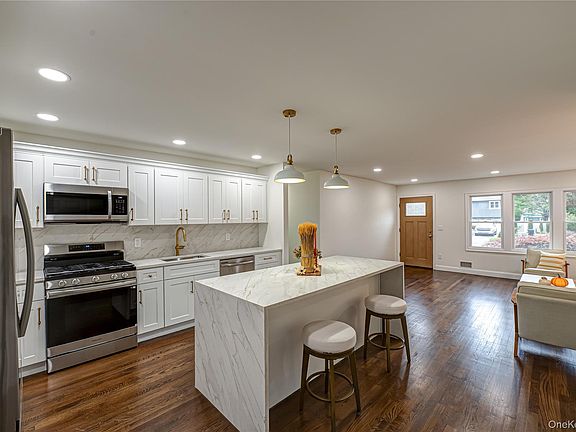 New Listing Alert – West Sayville with Sayville Schools! This home is truly done to perfection! From the moment you step inside, you’ll be greeted by gleaming hardwood floors, abundant natural light, and timeless style throughout. The chef’s eat-in kitchen is a showstopper, featuring quartz countertops, stainless steel appliances, elegant gold hardware, and cabinets galore- perfect for both cooking and entertaining. Enjoy elegant gatherings in the formal dining room or relax in the cozy step-down den. This home offers four spacious bedrooms, including a stunning primary suite with a full bath. Additional highlights include a full unfinished basement, one-car garage, and a fully fenced backyard - ideal for outdoor fun and privacy. Don’t wait, this West Sayville gem is sure to fly off the charts!