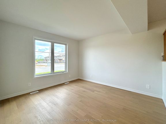 Discover the perfect blend of modern living and functionality. Situated in a prime Belleville location, this property is close to the Quinte Wellness Centre, 401, Walmart and the Quinte Mall, making it an ideal home for modern living. As you step inside, you're welcomed by the main floor's 9-foot ceilings, which create a spacious and airy atmosphere. The main floor features a formal living room, and spacious open dining and family room just off the beautiful kitchen complete with quality quartz countertops. Just past the kitchen is the rear breezeway which includes the powder room, laundry, and access to the fully fenced private courtyard area, and attached 2 car garage. Upstairs, the primary bedroom serves as a private retreat, featuring a walk-in closet, 3-piece ensuite bath and private balcony. Two additional bedrooms, a 4-piece bathroom and convenient laundry closet complete the second level. The full unfinished basement includes large windows and a basement bathroom rough in