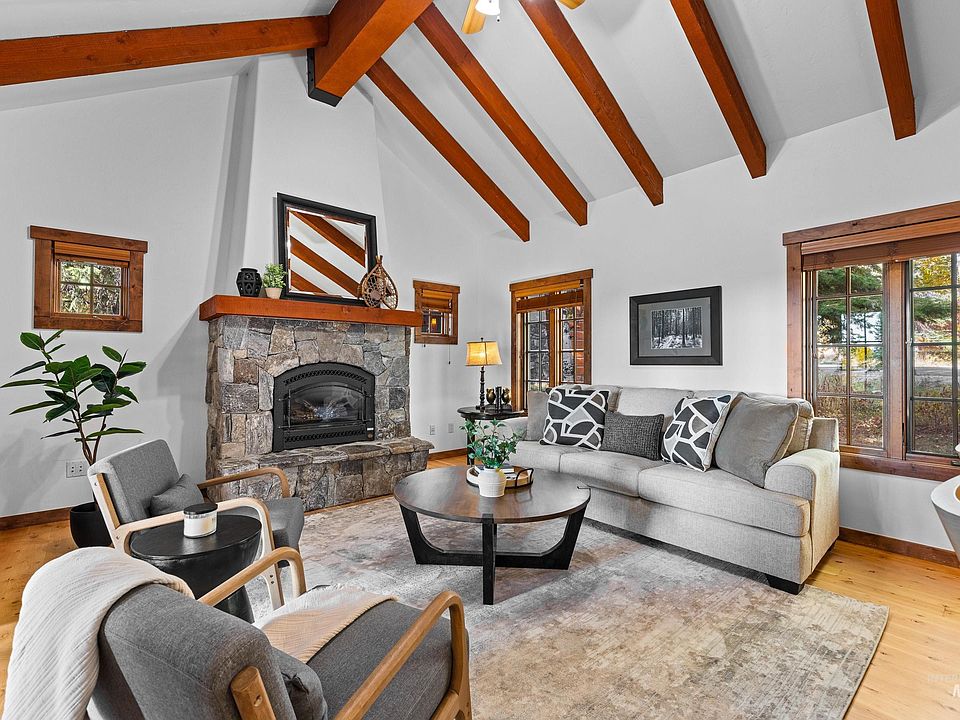 Location says it all. One of only 3 cottages directly on the golf course, 12 Rock Creek sits at the end of a cul-de-sac with lake and golf course views. Nestled within trees for added privacy, you still have direct access to skiing, golf, and the Lodge amenities including pool, hot tub, fitness center, sauna, spa and restaurant/bar. Newly updated, this cozy cottage is light and bright, offered fully furnished and ready to move in and enjoy. New flooring, paint and furnishings bring this timeless cottage up to date. Main level primary suite has a spacious bathroom and direct access to the deck. Upstairs suite has vaulted ceilings and walk in closet. Featuring a covered deck with private hot tub, single car garage, and additional parking spaces in front of cottage. LOCATION LOCATION LOCATION. This cottage offers it all.