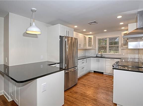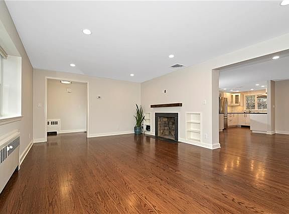 This expanded Ranch style home was fully renovated in 2016. Enjoy updated bathrooms and an Eat-in-Kitchen with SS appliances and granite counter tops. An open floor plan allows for an easy flow through Living, Dining, Family Rooms and Kitchen with sliding glass doors out to large slate patio and rear yard. The unfinished basement provides plenty of storage space and laundry area with large front loading washer and dryer. This impeccably maintained home has hardwood floors throughout, blinds installed on all windows, new light fixtures throughout, and custom closets in bedrooms. Owner will provide for lawn maintenance and alarm system contract. Tenant responsible for snow removal, all utilities and first $125 of repairs.