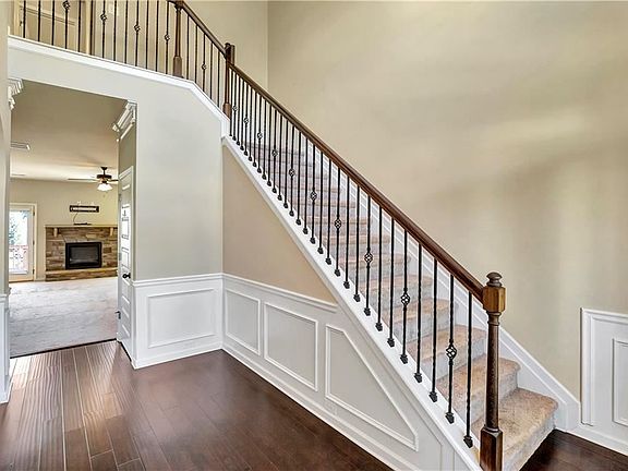 Beautiful 5BR/3.5 bath home is located in the highly desirable Rivendell Subdivision. The main level floor plan features a formal dining room, family room with gas log fireplace, spare bedroom, laundry area, a full bath, and a large eat-in kitchen and beautiful hardwood floors. Upstairs offers four bathrooms including the large owners suite with separate siting area. The kitchen includes granite counters, double ovens, gas cook and large bar area. The basement with over 900 square feet of finished area with extra storage, another living area, bedroom and half bath. Nice back deck off the breakfast area overlooking the fenced yard. Two car garage. Neighborhood features include a playground, clubhouse, fitness center, and a pool with a lazy river. Great location with quick access to I-85 on exit 27, close proximity to schools and shopping.