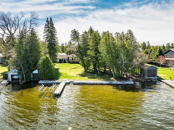 Welcome to 12 Romany Ranch Road, a stunning waterfront property nestled on the desirable shores of Balsam Lake. This exceptional cottage is situated on a premium 1.38 acre lot, boasting an impressive 100 feet of pristine waterfront. The property features a brand new armor stone break wall, ensuring both beauty & protection for your lakeside retreat, along with a convenient wet boathouse. The main cottage offers a delightful blend of charm & functionality, featuring two cozy bedrooms & a well-appointed bathroom. The inviting living space is enhanced by a wood-burning fireplace, perfect for creating warm, memorable moments during chilly evenings. The cottage comes fully furnished & turnkey, allowing you to move in seamlessly & start enjoying the lake life immediately. In addition to the main cottage, this property includes a spacious two-bedroom, one-bath guesthouse, ideal for hosting family & friends. You'll also find a separate workshop, providing ample space for hobbies & projects, along with an oversized double car garage for all your storage needs. The dry, flat lot offers tons of privacy, making it a perfect escape from the hustle and bustle of everyday life. Don’t miss the opportunity to own this enchanting lakeside retreat, where relaxation & adventure await at every turn.