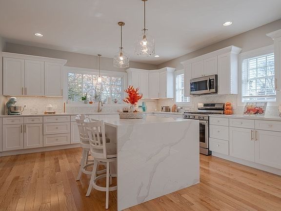 Welcome to your dream home! This beautifully designed home is conveniently nestled at the end of a cul-de-sac, just moments away from the highway for easy commuting. As you step inside, be captivated by the expansive open floor plan that seamlessly blends style and functionality, perfect for entertaining family and friends. Gleaming hardwood floors lead you to a cozy living room featuring a modern fireplace, creating the ideal ambiance for cozy nights in. The gourmet kitchen is a culinary enthusiast's paradise, showcasing high-end quartz countertops, a generous oversized island with a stunning waterfall feature, and an abundance of cabinets for all your storage needs. Enjoy cooking with stainless steel appliances, and let the oversized pantry keep everything organized. The first floor also boasts a versatile home office or playroom, alongside a convenient half bath. Upstairs you will find the primary bedroom with an en-suite bathroom, three additional bedrooms, bathroom and laundry.