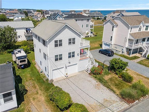 Welcome to your luxurious dream home in the Ocean Road/Point Judith area of Narragansett on the Atlantic Ocean. Throughout the interior of this magnificent 3 level seaside custom and well-built home, you and your guests will be in awe of the breathtaking ocean views from every angle, all the way down to Point Judith Lighthouse, extraordinary natural sunlight filled rooms, high ceilings, hardwood floors, loads of closets and ample storage space with an added bonus room, mud room, laundry and the spacious 2.5 car garage on the 1st level with break-away walls. On the 2nd level, perch yourself on the covered front porch and enjoy the calming saltwater breezes, beautiful and serene views the Atlantic Ocean, Point Judith Lighthouse and local beaches. Enjoy the Open Living space with a custom kitchen, dining and living room on this second level, perfect for entertaining! This main level also includes a large bedroom and a full bath with an oversized walk-in shower. On the 3rd level, you will be amazed by the Enormous Family Room, a sunny deck overlooking the Atlantic Ocean, 2 more large bedrooms and another Full Bath with a tub and shower combination. This exquisite property also features gorgeous and mature landscaping, a patio and a large private outdoor shower located near the back entry that leads you into the mud room and laundry area, convenient for those glorious boating and beach days. Come home to experience the charm of coastal living at its best in this prime location.