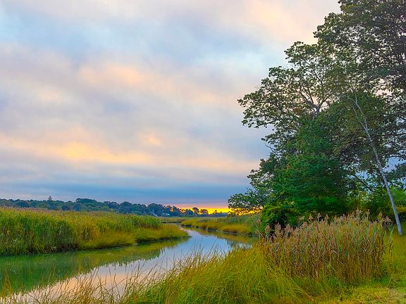 Sought-after Runnymede Drive is the setting for this one-of-a-kind, custom-built home, perfectly sited on a beautifully landscaped two-acre lot with sweeping views of the Little River and the Atlantic Ocean beyond. This rare vantage point offers some of the finest scenery on the Seacoast, blending rolling lawns, verdant vegetation, and tranquil waterways—complete with a waterfall that enhances the rural serenity. A kayaker’s and paddleboarder’s paradise, the setting also attracts abundant wildlife, including a resident bald eagle. Inside, nine finely detailed rooms include a first-floor primary suite, two additional guest suites with ensuite baths, a den, and an epicurean island kitchen outfitted with an AGA gas range, Subzero refrigeration, and upscale finishes. A private butler’s pantry/bar connects the kitchen to the formal dining room, while the marble foyer opens to a vaulted-ceiling living room with black walnut flooring. Seamless indoor-outdoor living invites dining and relaxation around the heated pool with waterfall feature. The finished lower level offers a private gym, wet bar, and billiards/theater room with surround sound and radiant heated floors. Two separate garages provide five radiant-heated bays for the car enthusiast. With its serene British-inspired design, hip roof, and subtle sand-colored stucco exterior, this custom residence is truly one of-a-kind. Quiet, sleepy side street with common 2 acre neighborhood lot and within sight and sound of the ocean!