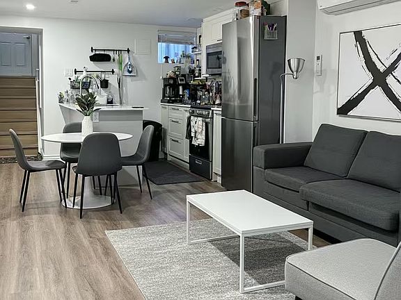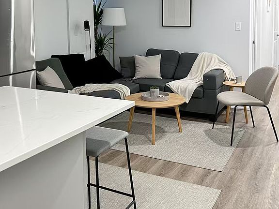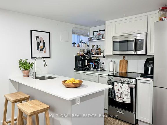 Stunning Renovated Basement Apartment in Prime Dufferin Grove Location. Step into this spacious and stylish basement suite featuring soaring ceilings over 7 feet, creating an airy and inviting atmosphere. The open concept living area is anchored by a sleek quartz countertop island, perfect for entertaining or casual dining. Two generously sized bedrooms with large windows,each fits a queen-sized bed comfortably. Private HVAC system with individual thermostats for personalized climate control. En-suite laundry for ultimate convenience. Private rear entrance for added privacy and ease of access. Steps to Dufferin Mall, Dufferin Grove Park, Ossington, West Queen West, and vibrant local shops, restaurants, and dog parks. Located in one of Toronto most sought-after neighborhoods, this unit offers the perfect blend of comfort, style, and urban convenience.