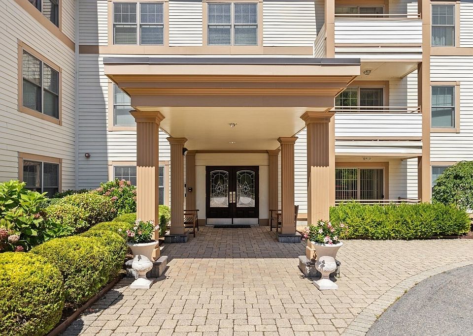 1 car garage! Luxury living in a premier 55+ community! This bright, 3rd floor, end unit, offers the comfort of single floor living in a secure elevator building. The oversized family & dining areas feature hardwood floors, crown molding, and access to a private covered balcony – perfect to catch fresh air without leaving home. The open-concept kitchen has a double pantry and great storage. The primary bedroom includes a walk-in closet and spacious walk-in shower. 2nd bedroom is ideal for guests or a home office. Second full bath has a tub – offering the best of both worlds with grab bars for safety. Condo features in-unit laundry. The residents of this community enjoy access to a fitness center, an elegant function room, and beautifully maintained outdoor patios. Conveniently located near shops, restaurants and medical centers including Newton-Wellesley Hospital. 2 deeded parking spaces. This condo combines comfort, security, and convenience in one of the most desirable towns.
