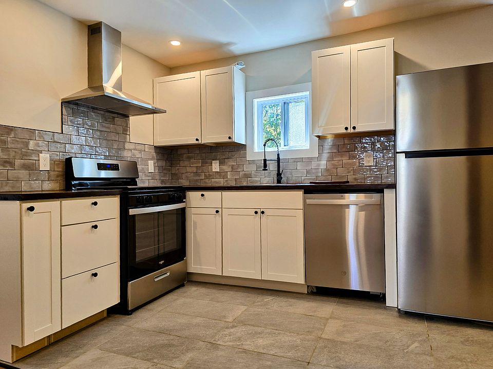 Newly fully renovated, spacious and modern 3 bedroom apartment available for rent. The apartment has high ceilings with tons of windows and lots of natural light. Stainless steel appliances, in unit washer dryer combo unit, deep soaking tub. Large fenced private backyard.
