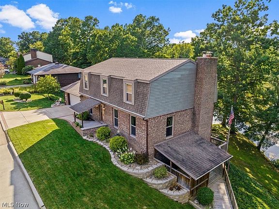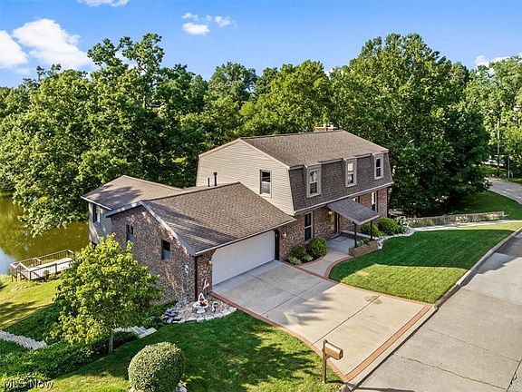 Lakeside retreat in the city! You'll love this well-maintained home in a quiet south side neighborhood. FIVE bedrooms, FOUR full baths, and over 3,000 square feet of living space! In addition to living and family rooms, kitchen, and dining, the main floor also hosts the large primary suite- which includes laundry. Another suite and three more bedrooms and full bath are all on the second level. Downstairs, a portion of the basement is finished into a huge rec room with adjacent full bath. An unfinished side of the basement provides ample storage. Custom built-ins throughout the home, such as desk, dry bar, and window seats. Don't miss the gorgeous view of the lake from the screened in porch off the back of the main level! This home has pristine landscaping, striking exterior style, a handy boardwalk from the street to the lower level, and a dock at the lake. Country feel with close proximity to schools, park, golf course, shopping and dining.
