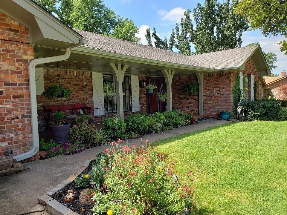 NEWLY RENOVATED open-concept charmer w/unique floor plan. Updates include:contemporary colors, new carpets/tile/luxury vinyl wood-look flooring throughout, new paint throughout, new granite counter tops, 1-year-old roof, 2 a/c units, new light fixtures, new Bosch dishwasher, new toilets, 4 lg bedrooms 3.5 baths, 2 liv. areas, formal dining & kitchen-breakfast dining, hearth room off kitchen w/cozy gas fireplace, large living room w/lg log fireplace, big laundry/pantry room, kitchen w/nice island, double oven & china cabinet/coffee bar. This house has been updated well w/neutral colors. Kitchen opens up to living room w/large eat-in bar area. 4 bedrooms are big; 1 bedroom has built-in desk area that could also be used as an office, w/adjacent Jack & Jill bathroom. Come see this beautifully landscaped home in great Edmond schools, accessible to Kilpatrick Turnpike, great shopping & entertainment! Neighborhood pool, park & greenspace just down the street. Home warranty provided