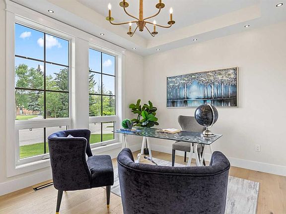 Brand-New 4900+ Sq Ft Custom Build in Varsity—Facing Green Space, Backing Treelined Pathways, and Built to the Highest Standards. This is the home Varsity has been waiting for — a fresh, full-scale luxury build on a flat, pie-shaped lot that faces onto open green space and backs directly onto the treelined pathway system. With over 4,900 sq ft, this home offers the perfect balance of thoughtful design, uncompromising finishes, and unbeatable location. From the moment you walk in, you feel the volume and elegance: 9’ ceilings on all three levels, wide-plank engineered hardwood floors, clean lines, custom feature walls, and natural light pouring in from oversized windows. The layout is ideal for family living, featuring 5 bedrooms (including 2 stunning primary suites), 4.5 spa-style bathrooms with heated floors, a private main-floor office, and an open-concept living/dining area built for entertaining. The heart of the home is the kitchen: JennAir appliances, a massive island, custom cabinetry, and direct access to a large deck and professionally landscaped backyard. Upstairs, a serene primary retreat features a steam shower, walk-in closet, and upper laundry. The fully finished lower level includes a home theatre, wet bar, bedroom + bath, and a second laundry room. Luxury features include: 200-amp electrical service, central A/C, built-in speakers, security camera system, heated double garage with epoxy floors and EV charger, irrigation system, and a fully fenced yard. Every detail was chosen for comfort, performance, and long-term living. Located in the heart of Varsity Village, you're steps from schools of all levels, the University of Calgary, and the shops and cafes of University District. Homes like this rarely come available—especially brand new and on a lot like this. Book your private tour today and experience the finest new construction Varsity has to offer.