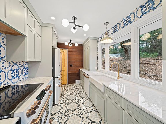 Welcome to this beautifully renovated bungalow on Sabrina Lake. Exuding charm and tranquil lake views, this pet-friendly home offers two spacious bedrooms and two modern bathrooms, blending comfort and style. The fireplaced living room is filled with natural light from surrounding windows framing lovely views and flows seamlessly into the beautifully-appointed new kitchen featuring GE Cafe appliances, granite and soapstone countertops, generous cabinetry, and large farmhouse sink overlooking the private grounds. Lower level offers flexible space ideal for a gym, office or guest suite with its own full bath. Enjoy the convenience of direct-entry garage, large driveway and ample storage. This meticulous home is perched on three quiet acres, accessed by a private road with no through traffic. Sabrina Lake offers outdoor activities including fishing, boating, and skating. Prime location near Ridge Hill Reservation trails, Dana Hall School, Wellesley shopping, dining, and train into Boston.
