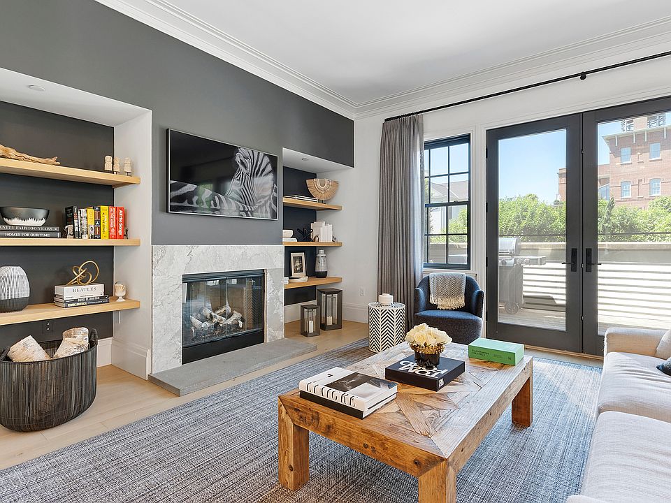 Working fireplacesColonial revival-style townhouseGas grillDedicated home officeHeated outdoor poolFour ensuite bedroomsPrivate attached garage