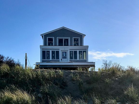 NEW CONSTRUCTION! Pre-completion custom Cape Cod Bay Beachfront property sitting atop the refined white sands north of historic RT 6A. Nestled in the dunes await's this idilic cape cottage style 2 bedroom, 2.5 bath waterfront home. Surround yourself in high end craftsmanship and detail as you glide through the open floor plan, humbled by the surreal long views. Tantalize the senses as you enter the great room with solid hardwood floors encapsulated by classically elegant wainscoting, stunning natural quartz and shimmering stainless appliances. Witness one of the most brilliantly majestic sunsets as it melts into the calming bay waters from your master bedroom roof deck, three season porch bar, expansive first floor azek deck, or fire-side on your private beach with toes in the sand. Amongst the backdrop of the bay, warm your body and soul in front of the field stone gas fireplace. Catch yourself as your eyes are continuously drawn to the artisan details of the custom constructed ceilings. This location warrants ones deep appreciation for the cape, its natural beauty and elegance. Investors take note of the rental potential a property of this magnitude can generate.