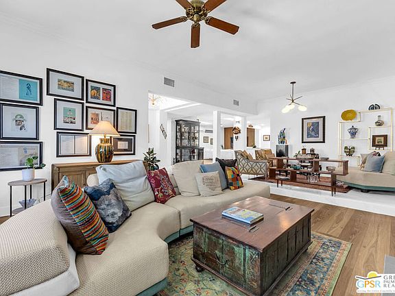 This isn't just a house, it is a space that inspires. Natural light pours in through skylights, dancing across vaulted ceilings and art-worthy walls. The open floor plan flows effortlessly, with thoughtful separation of space that makes entertaining easy and private retreats possible. Three generous living areas set the stage for gatherings big and small, whether it's a weekend full of friends or a quiet night at home. The primary suite has its own private wing, a true retreat with a sitting area (currently an office), a secluded patio, and a spa-like bath. Two additional en-suite bedrooms, one oversized, are perfectly placed for guests. At the heart of the home, a custom bar with wine and beverage fridges meets a TV wall built for movie nights or game-day celebrations. The modern kitchen, with walk-in pantry and abundant storage, keeps the chef part of the party. Most appliances are less than two years old. Two custom fireplaces, each finished with striking tile, bring both warmth and a touch of artistic drama, while outside a grassy yard welcomes kids and pets. A 10-person swim spa offers year-round relaxation, and close by, you'll find the community pool, spa, tennis, and pickleball courts. Set in a gated community beside the world-famous Sunnylands estate and across from Mission Hills, you're minutes from luxury shopping, favorite everyday stores, and the upcoming Disney Cotino community. With front yard care included in the HOA dues and 60 leased solar panels for energy efficiency, it's as easy to lock-and-leave as it is to stay and savor. Come see for yourself why 12 Santa Clara Drive isn't just a home, it's where your next chapter of elevated desert living begins.