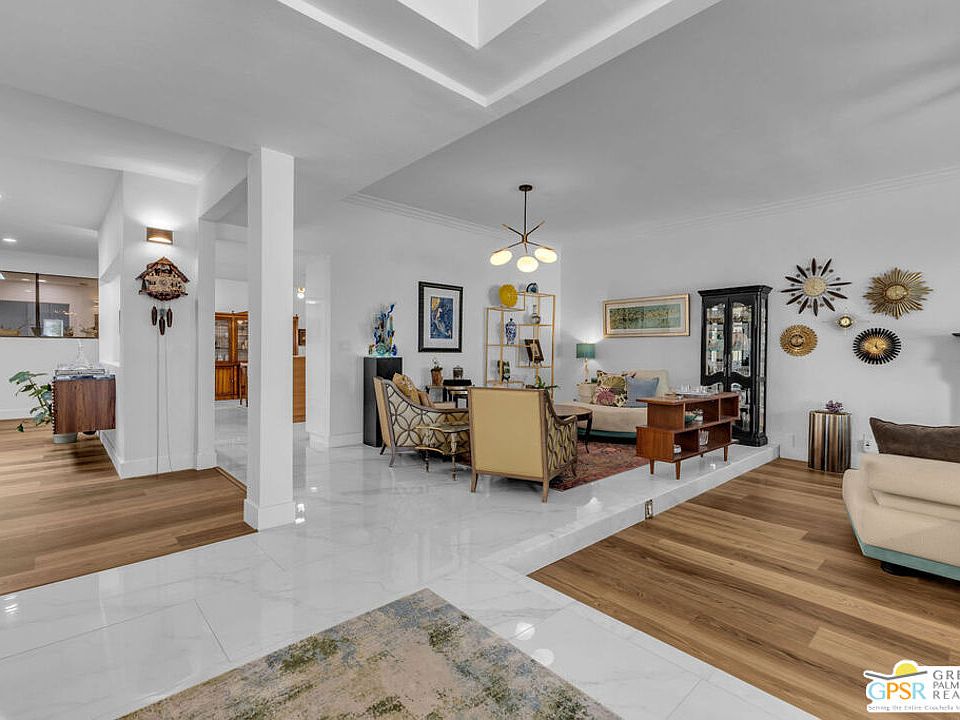This isn't just a house; it's a space that inspires. Natural light pours in through skylights, highlighting vaulted ceilings and gallery-worthy walls that are perfect for art lovers. The open layout offers easy flow for entertaining and peaceful separation when you want privacy. Three spacious living areas create flexible options for gatherings, quiet nights at home, or showcasing your favorite pieces. The primary suite has its own private wing with a sitting area (currently an office), a secluded patio, and a spa-like bath. Two additional en-suite bedrooms, including one oversized, give guests plenty of comfort. A custom bar with wine and beverage fridges connects to a TV wall designed for movie nights or game-day energy. The modern kitchen features a walk-in pantry, abundant storage, and newer appliances, all while keeping the chef part of the action. Two custom fireplaces add warmth and visual impact. Outside, a grassy yard welcomes kids and pets, and a 10-person swim spa offers year-round relaxation. The community amenities include a pool, spa, tennis, and pickleball courts. Located beside the world-famous Sunnylands estate and across from Mission Hills, you are minutes from luxury shopping, everyday conveniences, and the upcoming Disney Cotino community. With front yard care included in the HOA dues and 60 leased solar panels for energy efficiency, this home is easy to lock and leave or enjoy full-time. Come see why 12 Santa Clara Drive isn't just a home; it is a beautifully lit, thoughtfully designed stage for your next chapter of elevated desert living.