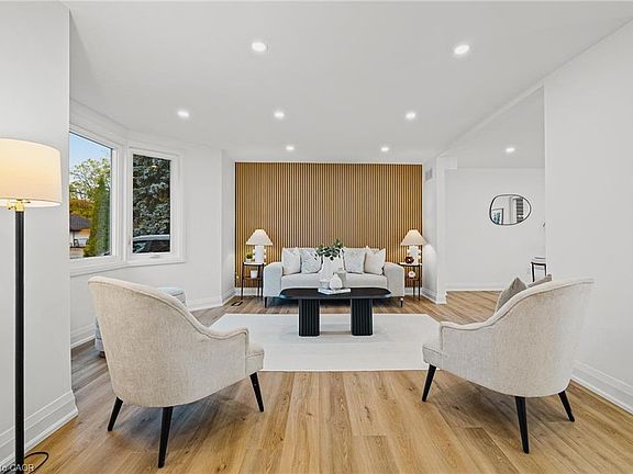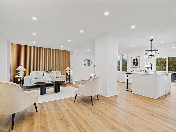 A restoration of one of Breslau's original homes, this property has features and charm that can't be found within a subdivision type of home. Entirely professionally renovated, this 3 bedroom, 3 bathroom is loaded with high end, modern design both inside and out. Make your entrance into the sunroom which is the perfect entry way/mud room. Step in through the next matching main door to the home where you are welcomed in to an open concept main floor. The living room with a feature wall and bay windows, a dining room and a stunning kitchen that exudes custom and high end design. This kitchen features an island with a breakfast bar, quartz for both the counters and backsplash, a separate space to create a drink or coffee bar and a sliding patio door leading out the balcony, perfect for BBQ. The quartz counters are matching for every counter throughout the home. Powder room on the main floor. Upstairs features 3 bedrooms and a luxury designed bathroom. The primary bedroom features a door leading to the newly done roof over the attached garage that can be transformed to a private balcony. The second floor luxury bathroom features heated floors, a curbless shower and a soaker tub with a LED mirror and under-cabinet lighting. The basement is fully finished giving you a large Rec room and another 3pc bathroom. The laundry room has been finished for comfort and maximized storage. The exterior features an interlock pathway from the driveway to backyard. Not one but 2 garages with new roofs on both as well as a shed in the backyard. This home was brought back to life and redesigned to maximize functionality in one of the most desired areas to live. The perfect location to live in quiet but still close to highways for commuting. Within minutes to Waterloo, Kitchener, Cambridge and Guelph, school nearby, library, parks & more. A perfect home to raise a family. Properties like these don't hit the market often, let alone renovated professionally like this. Book your showing today!