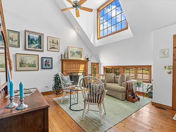 Massive 3-car attached tandem garage, a first floor bedroom w/full bath, and a beautifully landscaped fenced yard (2019) overlooking sunset views off the water are just three of the unique features that this home has to offer. You'll also fall in love with the open floor plan w/views from the front of the home to the back of the home. The living room and entry features high ceilings, wide plank hardwood floors, and an elegant fireplace. Huge, freshly painted family/great room with skylights, 1 year old flooring, skylights, and large newer picture & patio windows (2019) looking out to the most beautiful sunset views of nature and pond that any home has to offer. It also features vaulted ceilings, skylights, and a second fireplace (beautifully re-done in river rock). The kitchen features newer SS refrigerator & newer SS microwave, 5 burner SS oven/range, & SS dishwasher, knotty pine cabinetry w/crown moulding, & sunny herb window. Going upstairs, you'll find all brand new carpeting (including the stairs), two additional pen suite bedrooms, each with their own full bathrooms, plus a bonus cozy loft. Finished basement, newer stamped concrete patio (2019), as well as newer concrete driveway, and newer windows (2022-2023) throughout. Three car (tandem) garage with newer Legacy 850 insulated door & garage opener (2020) for all your water toys, storage or additional workshop. You will enjoy living in this lake community and all the water activities that it has to offer! Close to shopping, transportation, restaurants, College of Lake County and so much more!