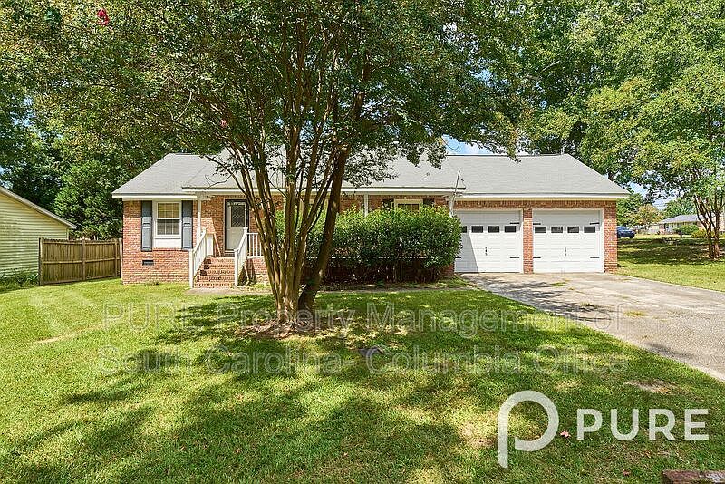 Lovely 3 bedroom, 2 full bath, brick ranch-style home in the Laurel Meadows neighborhood in W. Columbia. Home sits on a large corner lot w/ mature trees, covered front porch, 2-car garage, and mostly-fenced backyard w/ deck, paver patio, and storage shed. Laminate hardwood and LVP flooring throughout. Spacious family room w/ gas log fireplace, built-in shelving, and two ceiling fans. The kitchen features granite counter tops, an eat-in breakfast dining area w/ picture window,, and included smooth-top range, wall oven, stainless steel dishwasher, and side-by-side refrigerator. Formal dining room off kitchen could also be office, playroom, or storage. Primary bedroom suite has a walk-in closet and full bathroom w/ tiled shower. Two additional bedrooms and 2nd full bath w/ tile floors and tub/shower off the hall. Laundry/mudroom has stairs to bonus room over the garage. Convenient to Hwy 378/Sunset Blvd, I-20, and both Lexington and Columbia amenities. Lexington 2 schools.