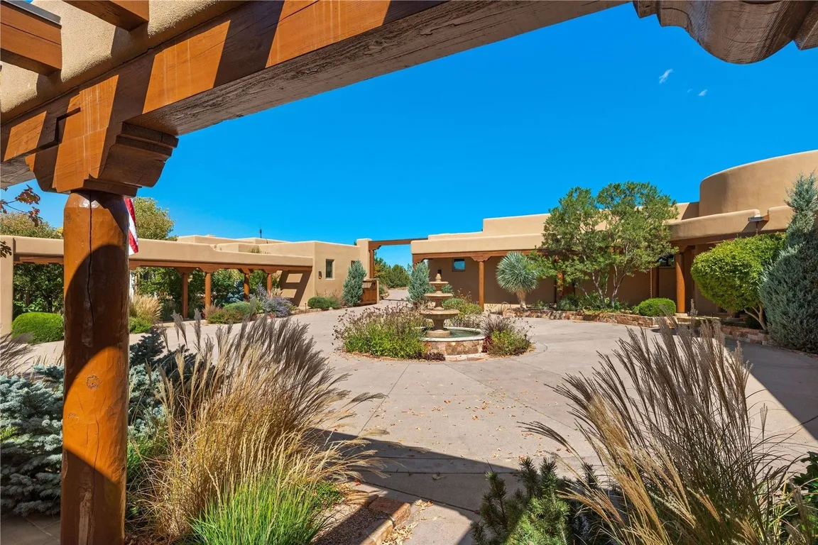 Set high on a private hilltop, and enjoying sunset mountain views, this custom Pueblo Revival compound embodies craftsmanship, substance, and timeless Santa Fe style. Built with quality at every turn and refreshed with a new roof and stucco, the property is introduced by a grand, gated courtyard with center fountain, full ...