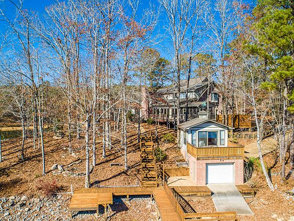One-of-a-kind point lot with 450+/- feet of waterfront. A boat ramp, boat house, 3 docks and a seawall are already in place making it easy to spend a day on the lake! The interior offers outstanding sunset and sunrise views from every window in the fireside living room, spacious kitchen, formal dining room and sunny breakfast area with skylights and access to the deck and screened porch.Enjoy the water views from the expansive deck and screened porch or unwind in the hot tub. Situated on 1.5 wooded acres complete with 2 garages and a new shed and within Alexander City limits for utilities, shopping and close proximity to Auburn University!