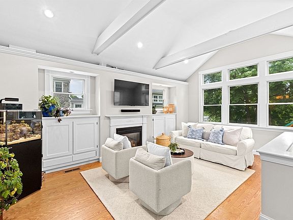 Nestled on a quiet street in the charming Hillside neighborhood, this coastal farmhouse provides a peaceful retreat in the heart of a quaint town. With three bedrooms and two bathrooms, plus a fourth option on the main level, it provides ample space for a growing family. The sunlit home boasts hardwood floors and a cathedral ceiling living room that seamlessly transitions into a formal dining and kitchen. Stained glass and built-in details add charm to the home, while the warm white kitchen features subway tile and a walk-in pantry. A finished basement could be transformed into a playroom or office, and a private deck and large fenced backyard offer the perfect spot to unwind outdoors. Located close to schools and downtown, this farmhouse offers a prime location with easy access to Sandy Beach. Big tickets items like AC, fence & furnace are newer.